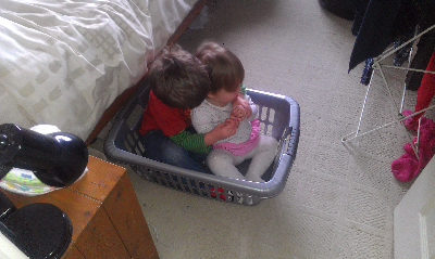 Megan and Ben were playing in the garden and when they came in they lined up their wellies and they just looked very cute!